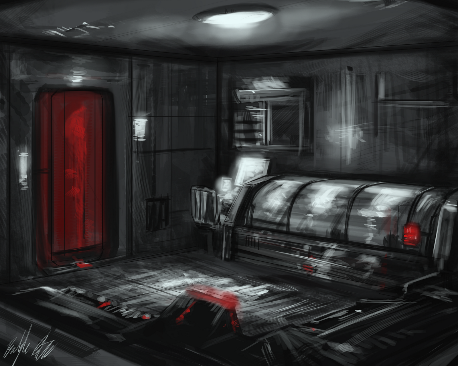 | Characters wake up on an abandoned spaceship in an unfamiliar quadrant of space. They're unhurt, but nauseated and dizzy, wearing whatever they were wearing before, with no possessions but what they were carrying with them. There are others, but no one has answers. There is no indication as to the ship's name, location or destination. While characters have access to the ship's computer terminals, the system seems to have been reset back to factory standards. There are five decks in total on the ship. The corridors are dark and grimey, with dim and flickering lights. This is the same on all decks. It's cold enough to see your breath in front of your face, but life support and artificial gravity seem to be working just fine. In regular intervals, there are fire doors, elevators, and air vents. Some characters will wake up in the corridors of deck 2. ![]() The mess hall can be found on deck 2. There are a number of replicator-like devices that sometimes work and sometimes don't. They have a very limited range of beverages and meals. Nothing is particularly palatable. Some characters will wake up in the mess hall. ![]() The bridge is on deck 1. Initially, it was blocked by debris, but this has since been cleared. ![]() The engine room is on deck 5. Good luck figuring out how things work, if you aren't familiar with space travel already. ![]() Most crew quarters are shared between 3-5 people. Some are double rooms obviously designed for couples. There are very few rooms with only one bed, mostly located on deck 1 where quarters are larger. Some seem to have been designed with families in mind. In total, there are 100 quarters. Characters can find communication devices linking to the ship-wide network in the crew quarters. Deck 1 features crew quarters and the bridge. Deck 2 features crew quarters and the mess hall. Characters wake up on this deck. Deck 3 features a small number of crew quarters. Several corridors are blocked by debris and some doors just won't open. Deck 4 features a sick bay with futuristic technology. The room has separate climate controls and is hence warmer than the rest of the ship. It also features a hangar bay with multiple small shuttlecrafts. Deck 5 contains the engine room. |